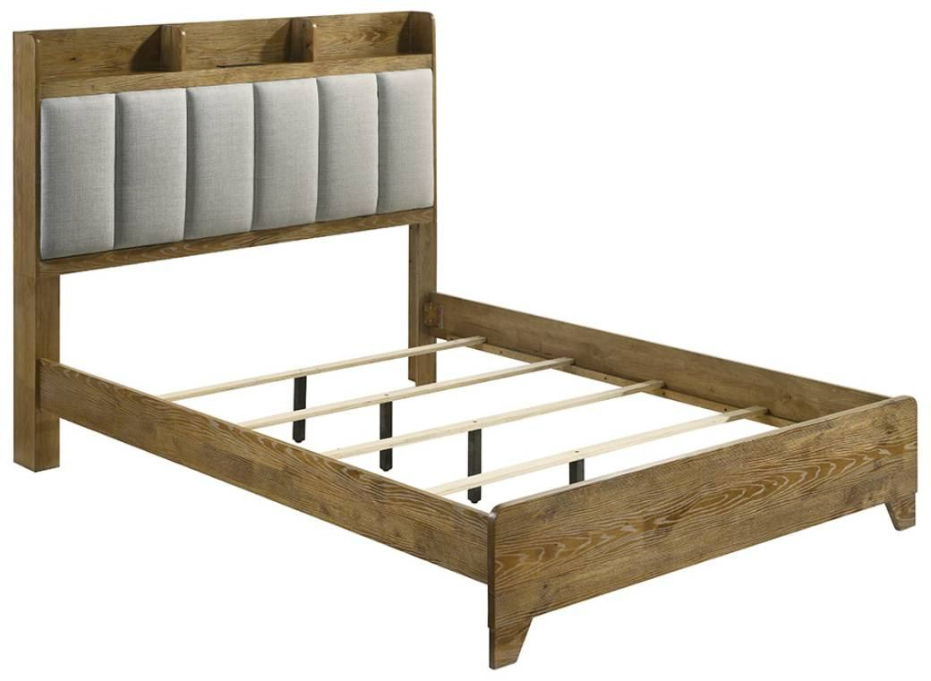 The Garcia Eastern King panel storage bed features a warm light aspen brown finish, a solid wood frame, and a built-in USB port, blending modern convenience with transitional style for organized, comfortable bedrooms.Read More